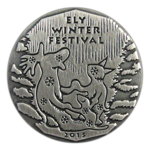 Design by local artist Consie Powell depicts forest creatures enjoying the winter atmosphere.  Metallic, multi-layered.